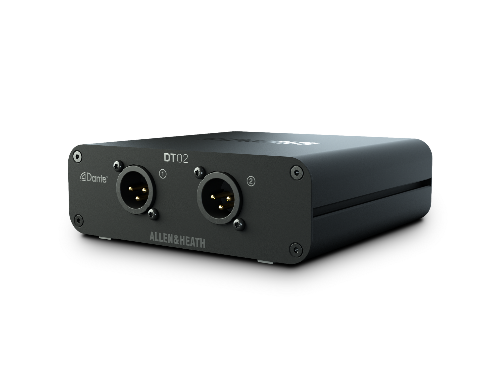 DT02 is a cost-effective, compact 48kHz/96kHz Dante interface enabling 2x XLR outputs wherever you need them on your Dante network. Ideal for a wide variety of fixed installation and AV hire / portable applications, DT02 can be used with any Dante-equipped Allen & Heath mixer or AHM system, as well as with third party Dante systems.