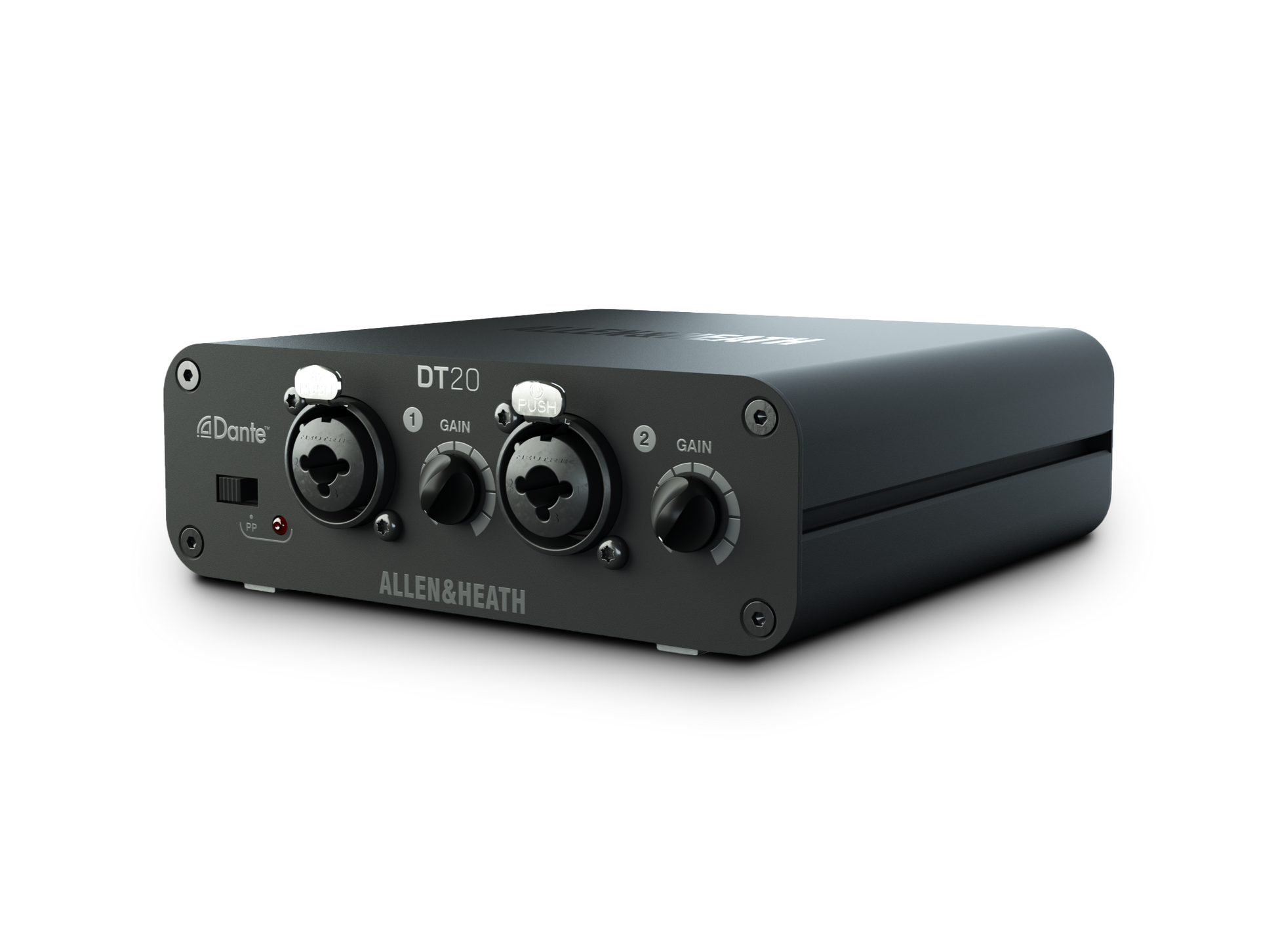 The compact and portable DT20 converts two analogue inputs, via combo XLR-Jack, to two channels of Dante audio, enabling hassle-free connection of analogue sources to a Dante network for install and live applications.