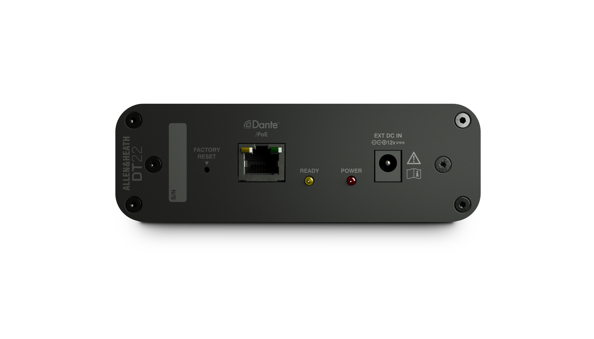 It can be used with any Dante-equipped Allen & Heath mixer or AHM system, as well as in third party Dante systems. The unit can be PoE powered or powered via a DC 12V supply.